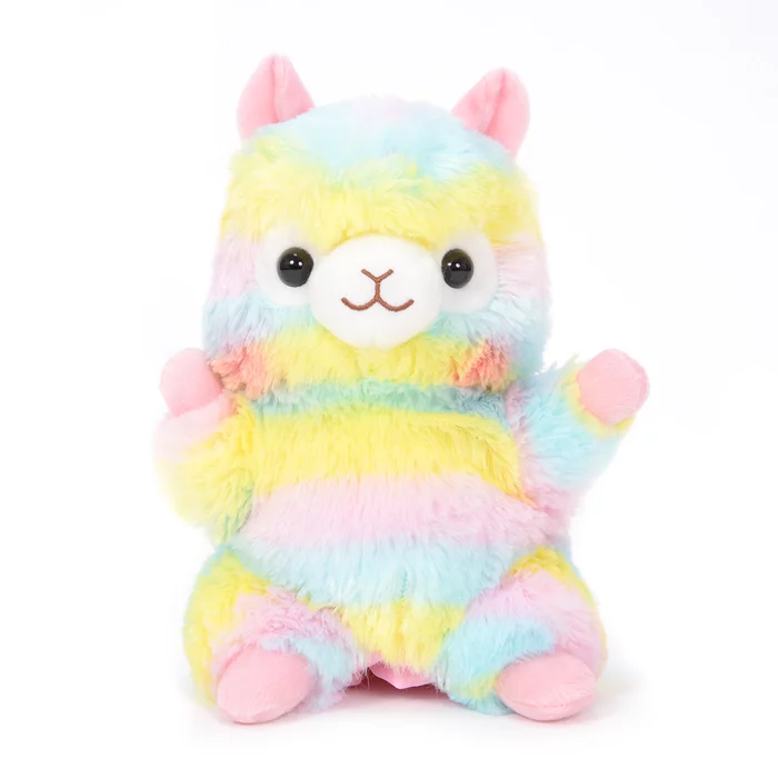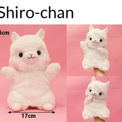 You can choose from Rainbow and Shiro-chan, and they each measure 8.7″ x 7.9″ x 5.1″. When you’re not busy putting on fabulous Alpacasso productions, these hand puppets can be propped up to look just like a regular plushie!