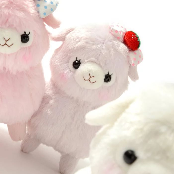 You might think that Alpacasso (Arpakasso) are always lovely, and you wouldn’t be wrong, but these Alpacasso Kids plushies have been selected for their especially high “loveliness” quotient. The Alpacasso Kids are plumper and rounder than their grown up varieties with cute chibi-style look, and these ones are all wearing adorable strawberry themed bows so they really do look “lovely.”