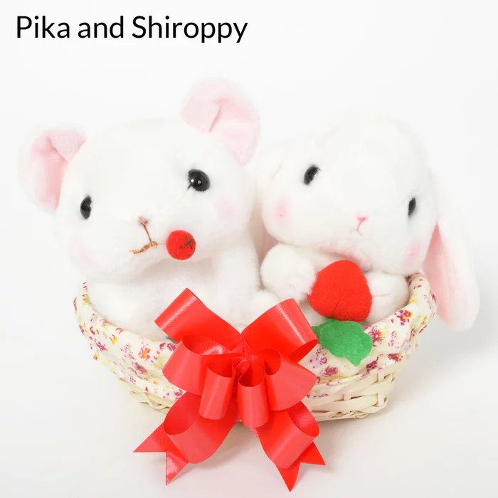 Three different pairs are available: Kyun Kyun & Powa-chan; Pipi-chan & Castelappy; and Pika & Shiloppy. Each plushie is about 5” tall, super soft, and has its own special charm whether it is holding a snack, wearing a pretty velveteen ribbon, or even balancing a toadstool atop its head!