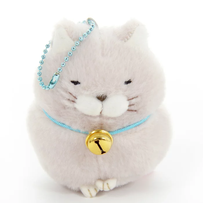 They are palm-sized plushies standing 3.5” tall, super soft and round like fresh bread. They also come with a ball chain matching the color of the cord of the little bell on their neck to keep you company wherever you go~