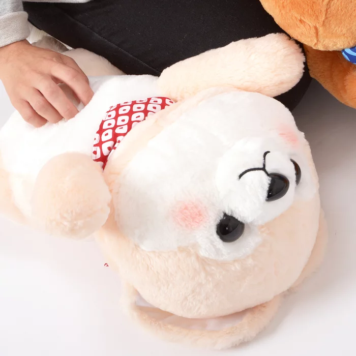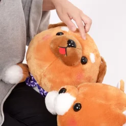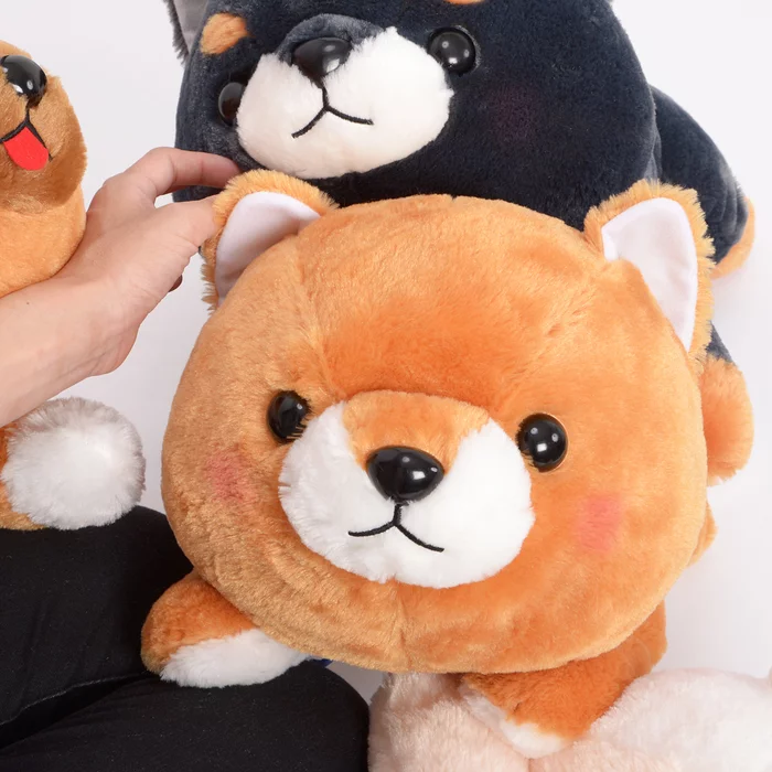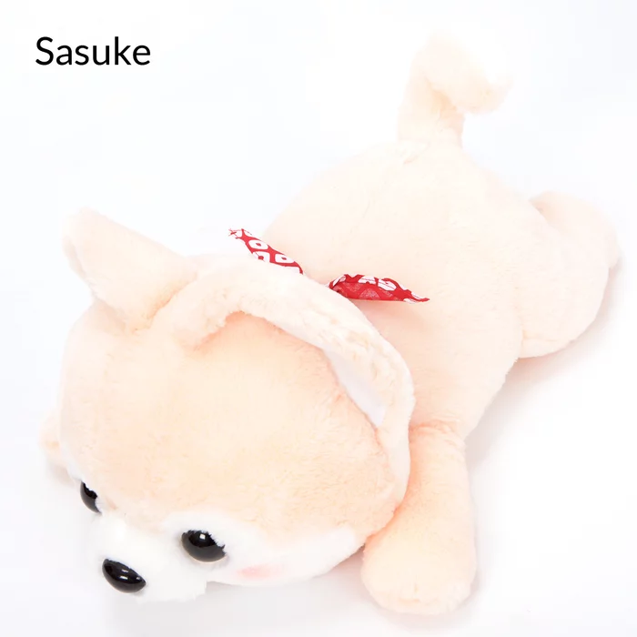 Your favorite Shiba Inu pups have been playing all day, making them so tired they just sprawled on the ground! Mametaro, Mamejiro, Mamesaburo, and Sasuke are about 16.5” long, 8.7” tall, and 8.7” wide, making them perfect to be on the receiving end of your crushing hugs or even as pillows!