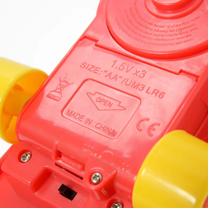 Just turn the switch to ON and hit the PUSH button to get the board moving. Push it again to turn it off! These street-shredding pups measure 7.5″ x 4.3″ x 8.7″ while on their boards.