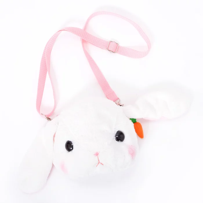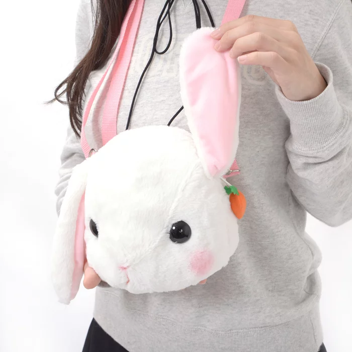 ! With total dimensions of W7” (9.8” w/ ears) x H5.5” x D5.1” it can even fit an iPhone 6 Plus!. The adjustable shoulder strap can extend from 23” to 47” and is removable so you can wear your favorite bun as a shoulder bag or carry it as a pochette. Also new is a Loppy pattern inner fabric and a plushie carrot zipper pull!