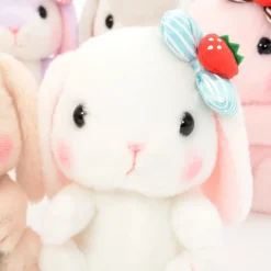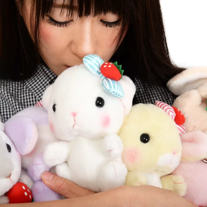 The adorable bunnies of the Pote Usa Loppy series are wearing cute strawberry striped bows and holding strawberries – one of their favorite foods! Each 5.5”, super soft, and adorably plump! Choose from Shiloppy, Mimi-pyon, Chappy, Pyon-tan, Hiyoppy, and Sumire-chan or get the Complete Set for a whole herd of bun buns!