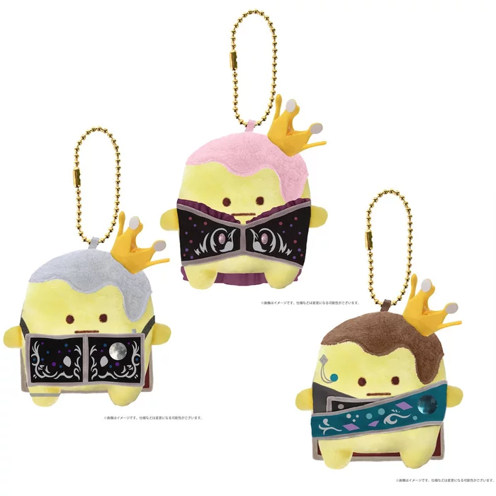 Gaku, Tenn, and Ryunosuke of the IDOLiSH 7 idol group TRIGGER have been transformed into King Pudding-inspired designs for this ultra cute ball chain plush collection!