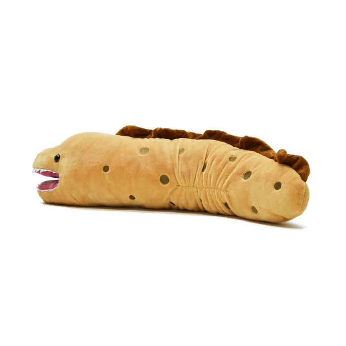 Chomp! Chomp! Chomp! This eel plushie looks innocent enough, but be careful because it might try to take your arm off! Thankfully, its soft bite is no match for your arm. He’ll just kinda get stuck on it… Cute in an odd way, this well-made plushies measures 6.7″ x 6.9″ x 25.6″.