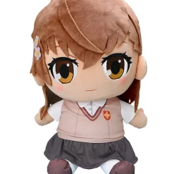 Now you can cuddle up with Academy City’s third ranked Level 5 esper! From Good Smile Company comes a big, soft plushie of Mikoto Misaka from the popular anime A Certain Scientific Railgun T. Measuring 15.7″ tall in a cute sitting pose, she looks adorable in her school uniform and features a cute chibi look with stubby lil hands and feet and big, expressive embroidered eyes. Enjoy her cute charm as part of your collection!