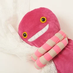 Now a completely new type of Mokeke has been discovered! Handily, this little dude is just the right size to serve humanity in the form of a hug pillow! It seems to answer to the name KeteKete and is a bright pink color with striped pink-gray arms and a huge grin on its face. Perhaps it got its name because it looks like its always laughing! It also has a strange hook on its back, so perhaps you could even use your Mokeke as a particularly vital wall decoration (though this seems a bit mean). Adopt your very own Mokeke today and help increase humanity’s knowledge about this strange new extraterrestrial life form – or just have fun with some fantastically cute hugs!