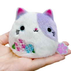 The adorably round-as-dango kitteh Neko-dango is back with a hydrangea design. This Neko-dango has white and purple fur with ombre ears that match the embroidered hydrangea blossoms on the front. Also features a pink paw-print-shaped tag that coordinates well with the floral design. Measures 3″ x 2.4″ x 2.8″. Add it to your collection!