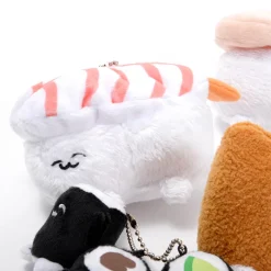 Oshushi and friends are here to satiate your craving for sushi any time of day! From the popular Oshushidayo! four-panel comic by Yabai-chan that started on Twitter, Oshushi, Ebi, Hotate, Inari, and Norimaki have turned into cute plush mascots each with a ball chain attached. Hang them from a bag to have delicious-looking sushi always on hand.