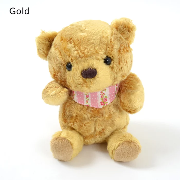 Those excited eyes and lively aura can only belong to Pucci the Bear! This friendly little bear is 9.1” and ready for bike rides, naps, and more! You can choose how tanned all the adventures have made Pucci by picking either gold or beige fur. The country rose design of the bandana stays the same, though Pucci will switch out the colors from pink to blue, depending!