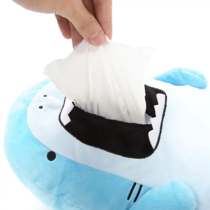 Even fearsome sea creatures catch cold sometimes! Let Hoojiro the great white shark help you out with this cute plush tissue box featuring the iconic Same-Z character. Measuring an impressive 13” tall, the box is positioned with Hoojiro sitting upright complete with adorable fin feet on the bottom.