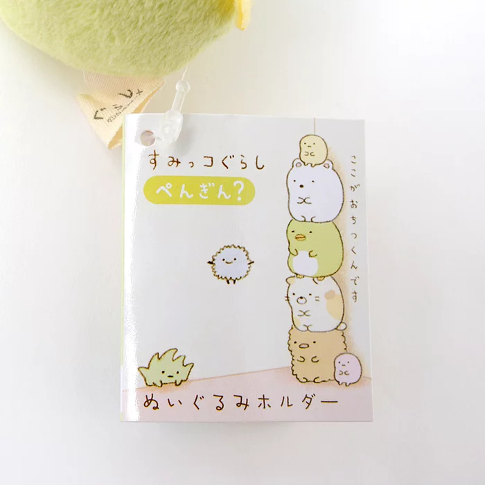 Sumikko Gurashi is a line of feel-good characters by San-X that are plump, oddly shaped animals that like to hang out in corners and love stuffing their faces full of mandarin oranges. This strap features a mini plushie of Penguin?, the character that may or may not be an actual penguin! We think he might be a kappa that has lost its shell! Also attached is an even smaller felt Tapioca charm. A strap and ball chain are included so you can easily attach this cute collectable to your smartphone, laptop bag, and more!