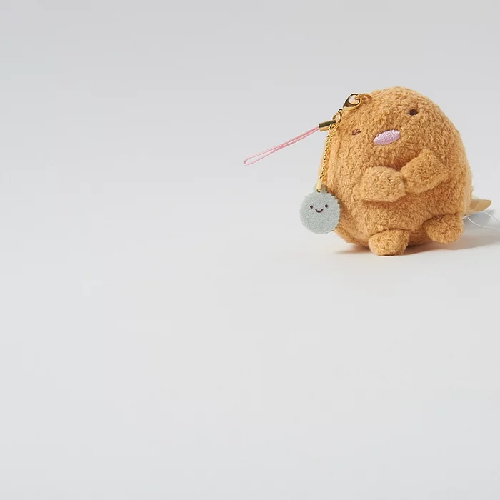 Sumikko Gurashi is a line of feel-good characters by San-X that are plump, oddly shaped animals that like to hang out in corners and love stuffing their faces full of mandarin oranges. This strap features a mini plushie of Tonkatsu! Tonkatsu is a 99% fat, 1% meat fried pork cutlet that no one wants to eat. ToT! Also attached is an even smaller felt Hokori charm. Hokori is a cheerful dust ball! A strap and ball chain are included so you can easily attach this cute collectable to your smartphone, laptop bag, and more!