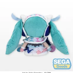 A big ohayo to you from this large fluffy Hatsune Miku plush! Produced by SEGA, this Miku plush depicts the Vocaloid idol in her Magical Mirai 2020 Winter Festival dress. Highlights of the outfit include a pink and blue candy cane and a white trim shawl that’s soft to the touch!