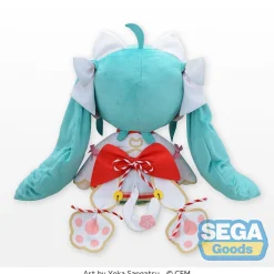 Hatsune Miku is here to bring you good luck as this adorable extra large plushie from SEGA! Measuring 15.7″ tall, she is dressed up like a maneki-neko with cat-like details including paw prints on the bottoms of her shoes and a bell collar, and she’s extra soft and fluffy with an embroidered expression that is too cute to resist!