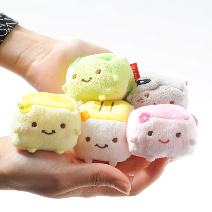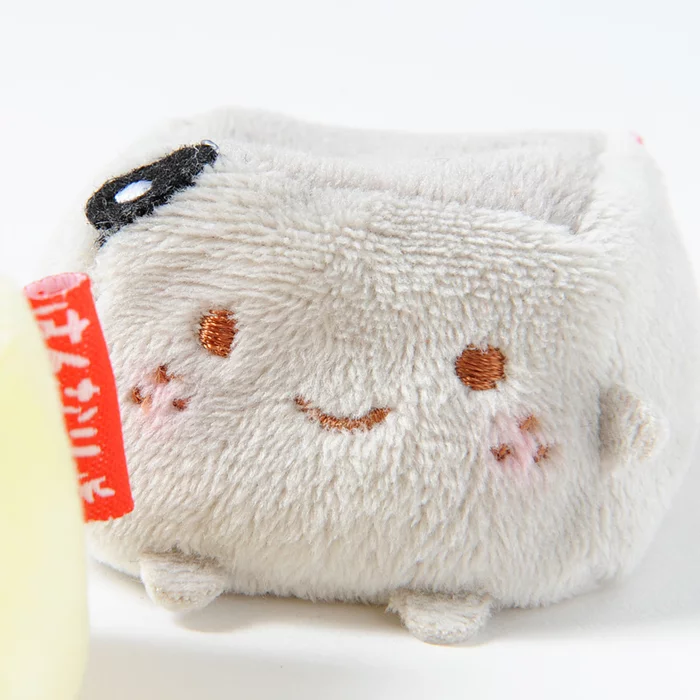 Have you heard of Hannari Tofu? Hannari means “elegant” in the dialect spoken in southern Japan, and Hannari Tofu is certainly a stylish soy-based lifeform and is just as soft and fluffy as its namesake. Now you can enjoy even more Hannari Tofu with half the calories thanks to these tiny “tenori” size versions which are small enough to fit in the palm of your hand! As well as a complete set, there are five different versions available individually: Ume Tofu (pink), Yaki Tofu (white body with a “grilled” yellow top”), Yuzu Tofu (yellow & green), Matcha Tofu (green), and Goma Tofu (black). Each comes with Hannari Tofu’s adorable face embroidered on the front as well as the characteristic decoration on its forehead: a plum for Ume, a star for Yaki, a yuzu fruit (Japanese citrus fruit) for Yuzu, a tea leaf for Matcha, and a tiny black sesame seed for Goma who also has cute freckles on his face! Pick your favorite or stack them up to for an awesome Tower of Terrifying Tiny Tofu Cuteness. Either way, there’s no escaping the adorableness of these mini Hannari Tofu plushies!